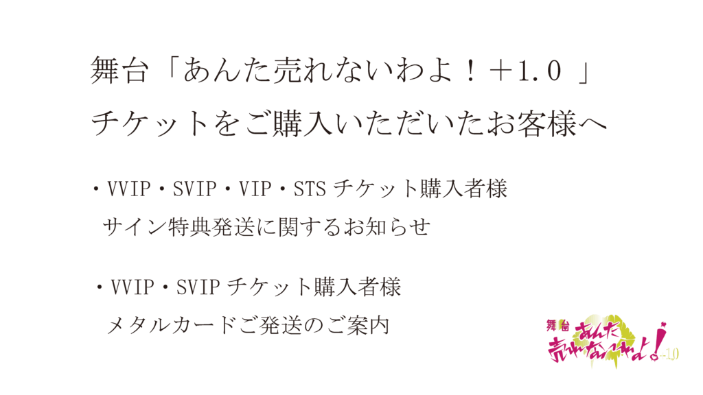 ・VVIP・SVIP・VIP・STSチケット購入者様サイン特典発送に関するお知らせ